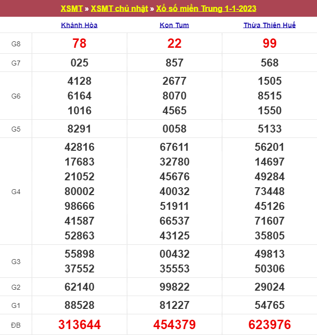 Giải đặc biệt đài Kon Tum ngày 08/01/2023