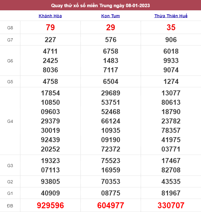 Giải đặc biệt đài Thừa Thiên Huế ngày 08/01/2023