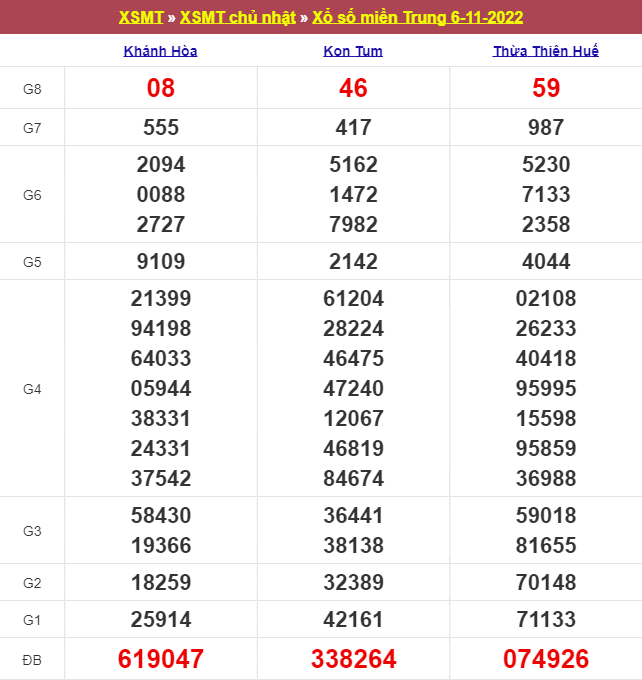 Giải đặc biệt đài Kon Tum ngày 13/11/2022