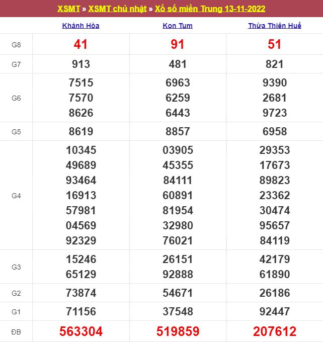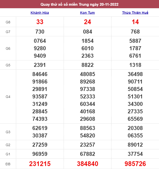 Giải đặc biệt đài Kon Tum ngày 20/11/2022