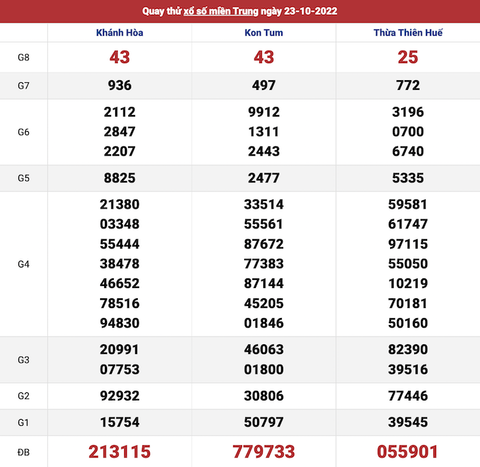 Giải đặc biệt đài Khánh Hòa ngày 23/10/2022