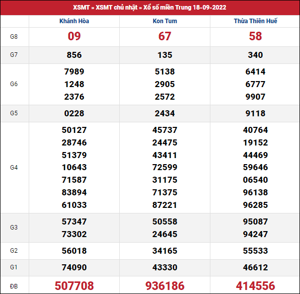 Giải đặc biệt đài Thừa Thiên Huế ngày 25/09/2022