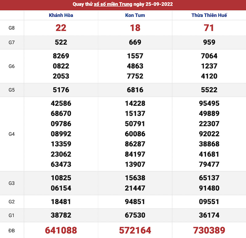 Giải đặc biệt đài Khánh Hòa ngày 25/09/2022