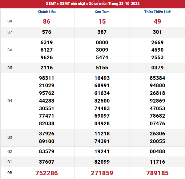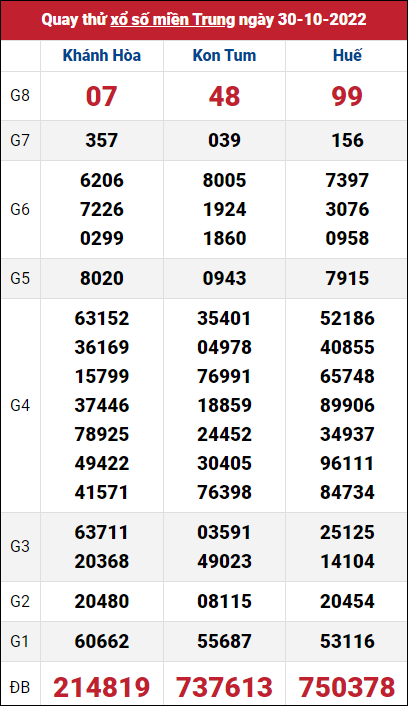 Giải đặc biệt đài Kon Tum ngày 30/10/2022