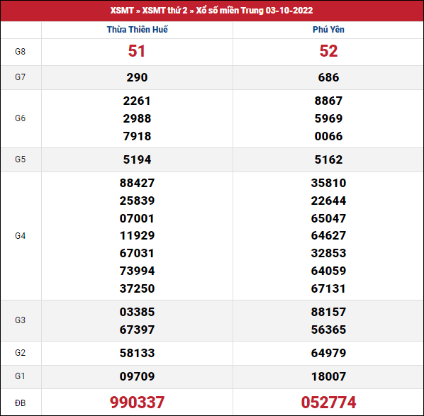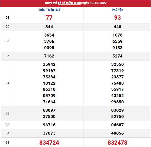 Giải đặc biệt đài Thừa Thiên Huế ngày 10/10/2022