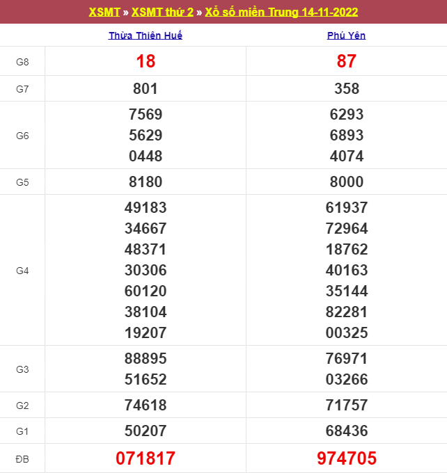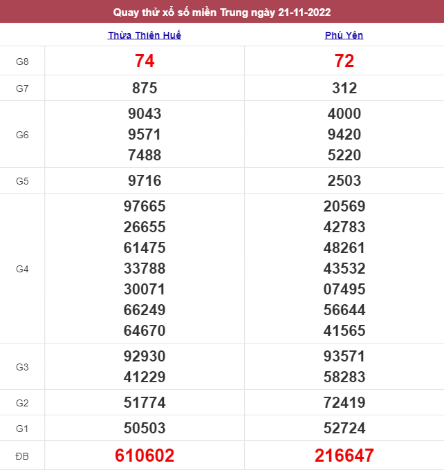 Giải đặc biệt đài Thừa Thiên Huế ngày 21/11/2022