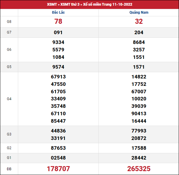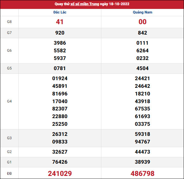 Giải đặc biệt đài Quảng Nam ngày 18/10/2022