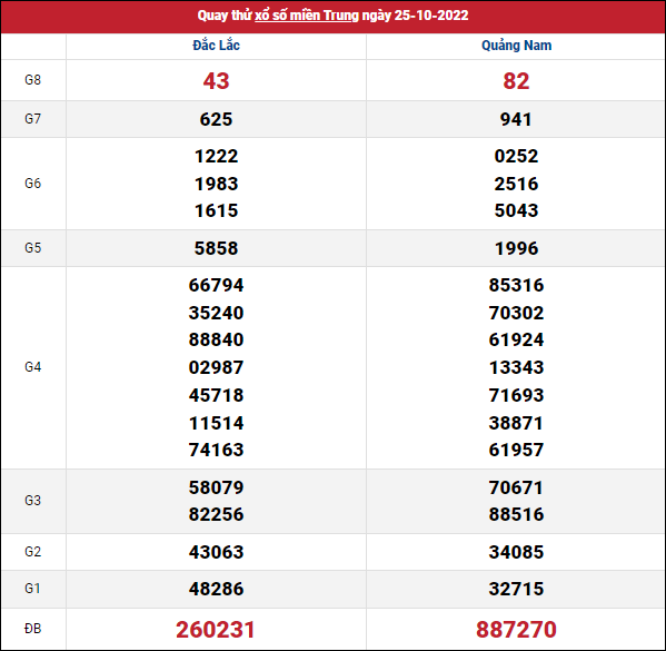 Giải đặc biệt đài Quảng Nam ngày 25/10/2022