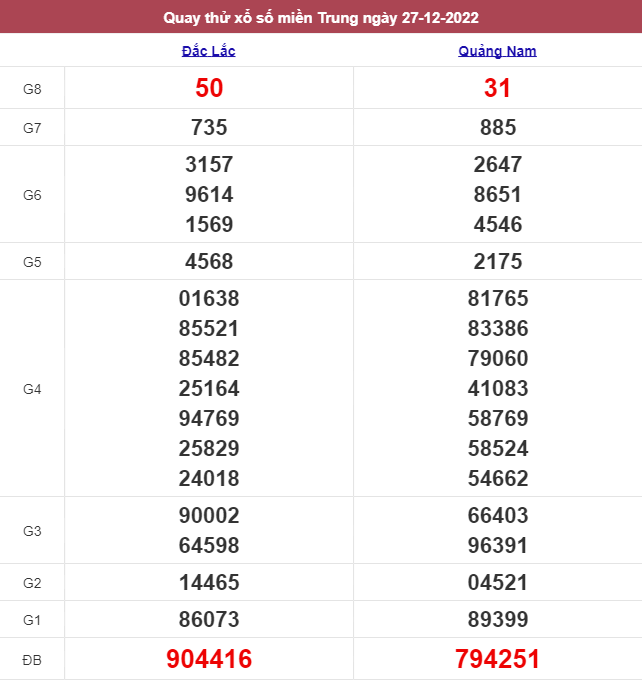 Giải đặc biệt đài Quảng Nam ngày 27/12/2022