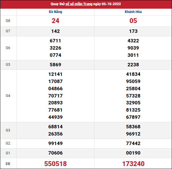 Giải đặc biệt đài Đà Nẵng ngày 05/10/2022