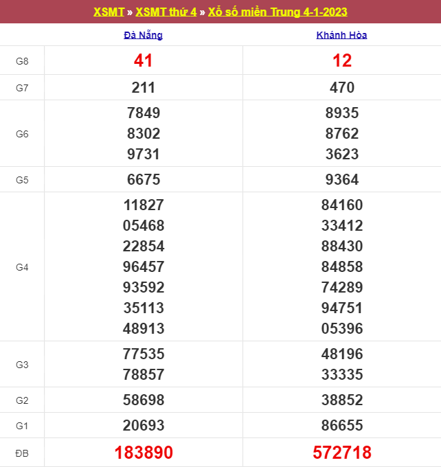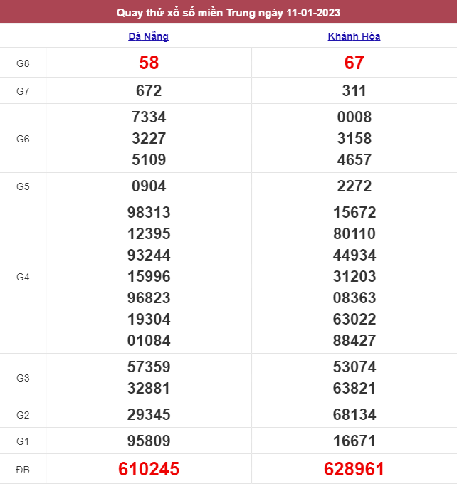 Giải đặc biệt đài Đà nẵng ngày 11/01/2023