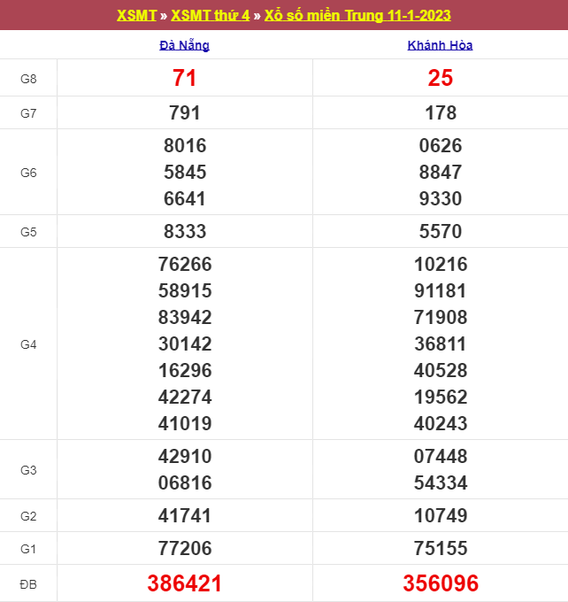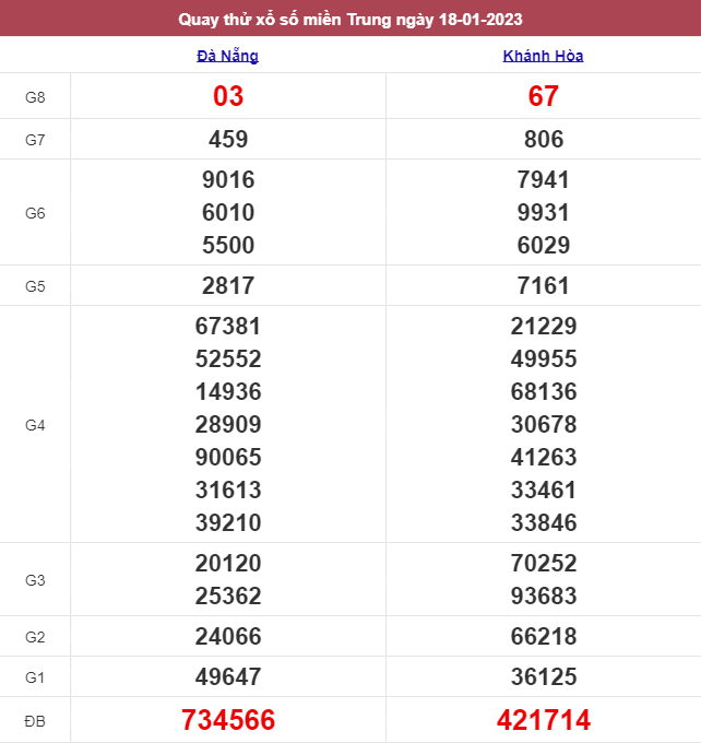 Giải đặc biệt đài Đà Nẵng ngày 18/01/2023