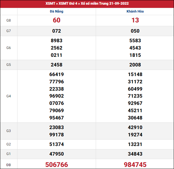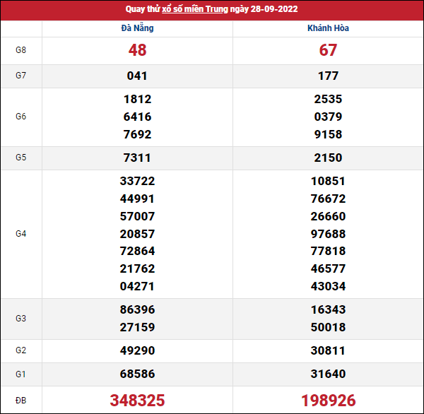 Giải đặc biệt đài Đà Nẵng ngày 28/09/2022