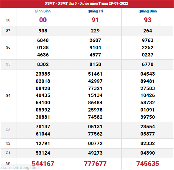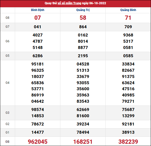 Giải đặc biệt đài Quảng Bình ngày 06/10/2022