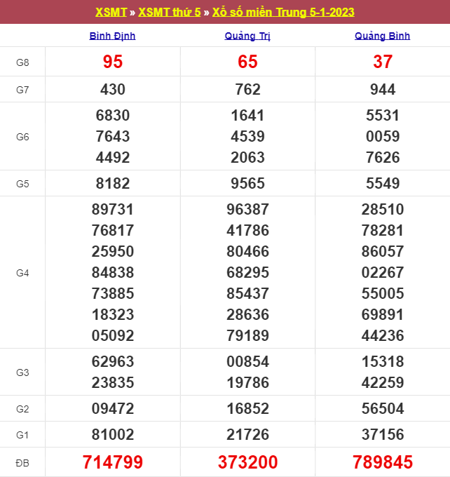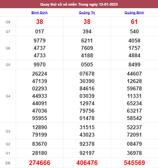 Giải đặc biệt đài Quảng Bình ngày 12/01/2023