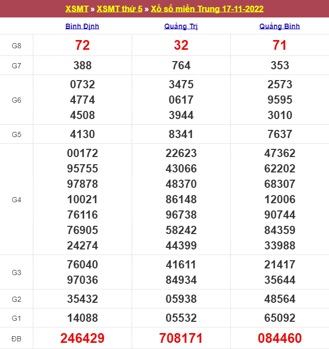 Giải đặc biệt đài Quảng Trị ngày 24/11/2022