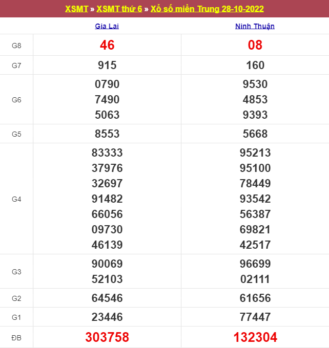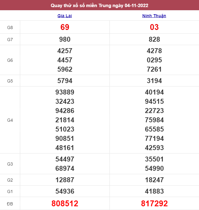 Giải đặc biệt đài Ninh Thuận ngày 04/11/2022