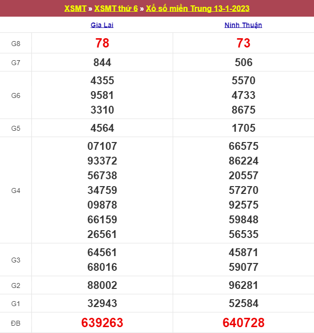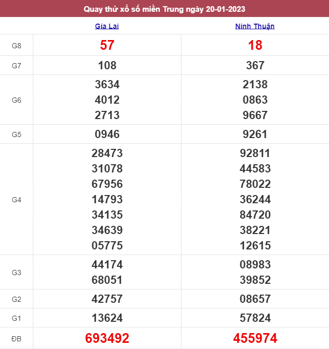 Giải đặc biệt đài Ninh Thuận ngày 20/01/2023