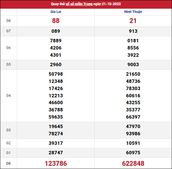 Giải đặc biệt đài Ninh Thuận ngày 21/10/2022