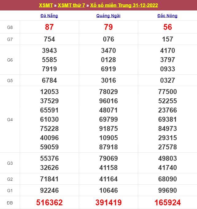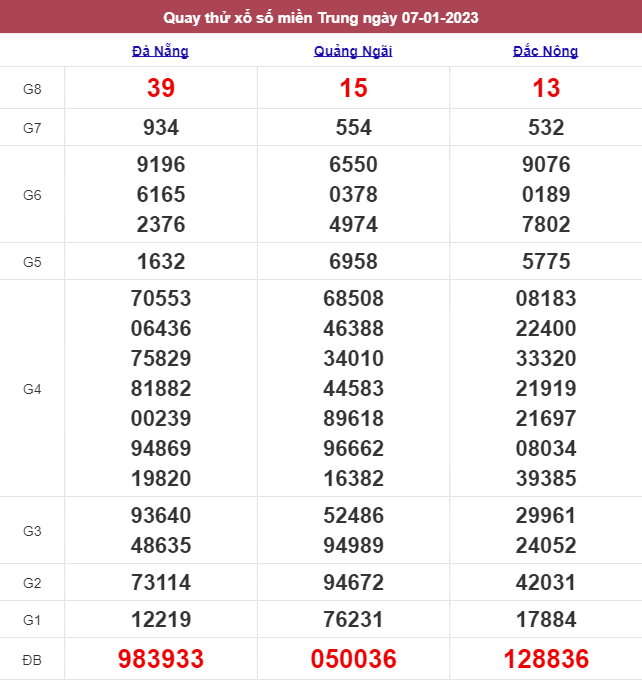 Giải đặc biệt đài Đà Nẵng ngày 07/01/2023