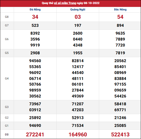 Giải đặc biệt đài Đà Nẵng ngày 08/10/2022
