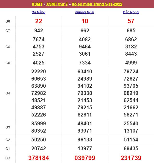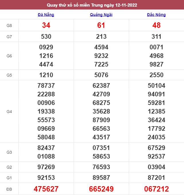 Giải đặc biệt đài Đà Nẵng ngày 12/11/2022