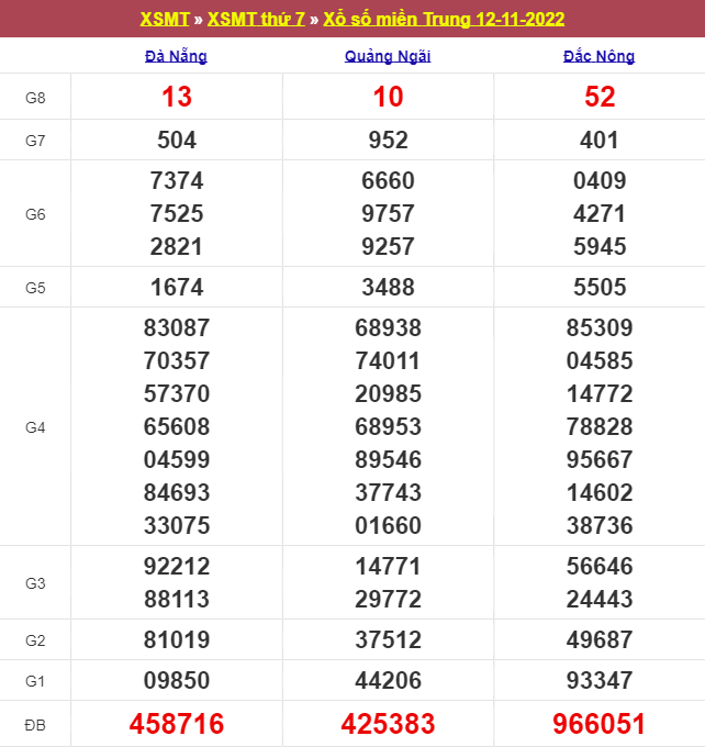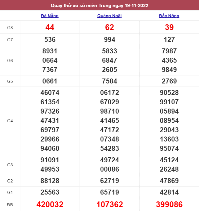 Giải đặc biệt đài Đà Nẵng ngày 19/11/2022