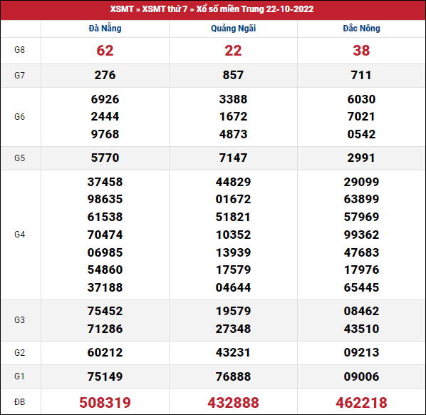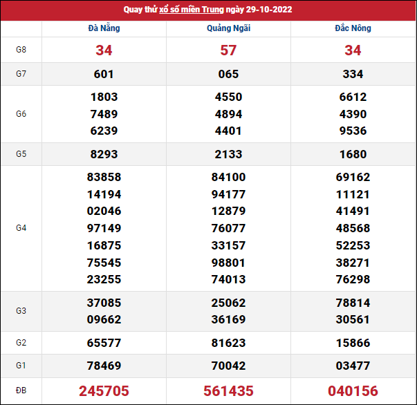 Giải đặc biệt đài Đà Nẵng ngày 29/10/2022