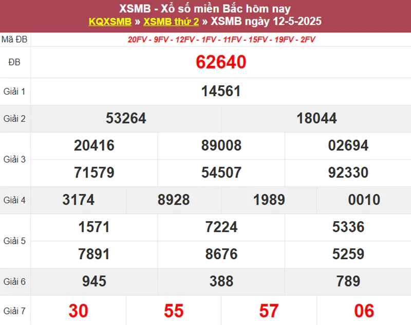ZO88 đã ngay lập tức tổng hợp dữ liệu sau kỳ quay XSMB ngày 12/5/2025 – mang đến cho thành viên những con số thống kê về các lần mở thưởng trước.