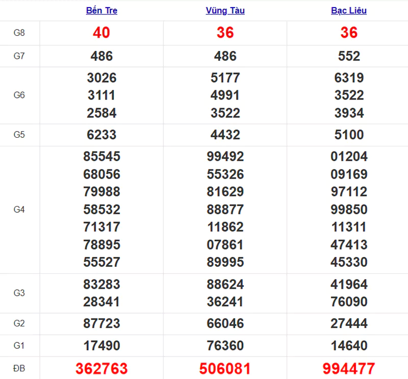 Thống kê kết quả xổ số đài Bạc Liêu kỳ trước